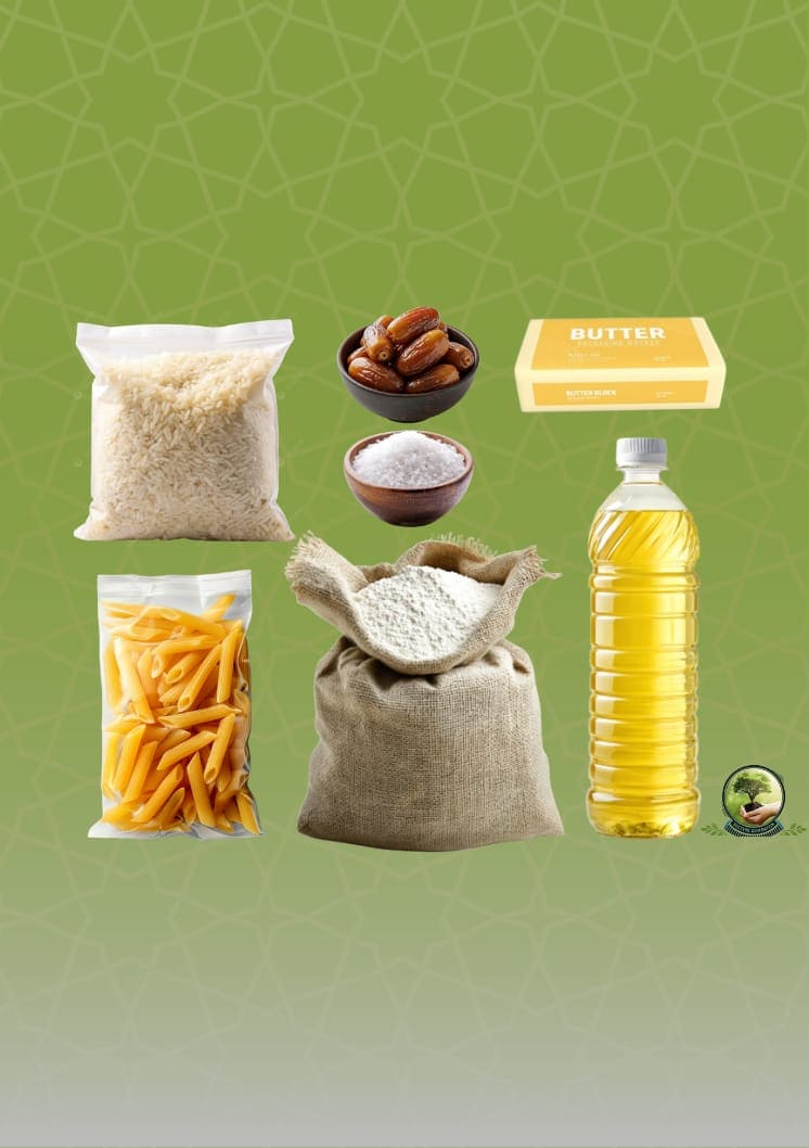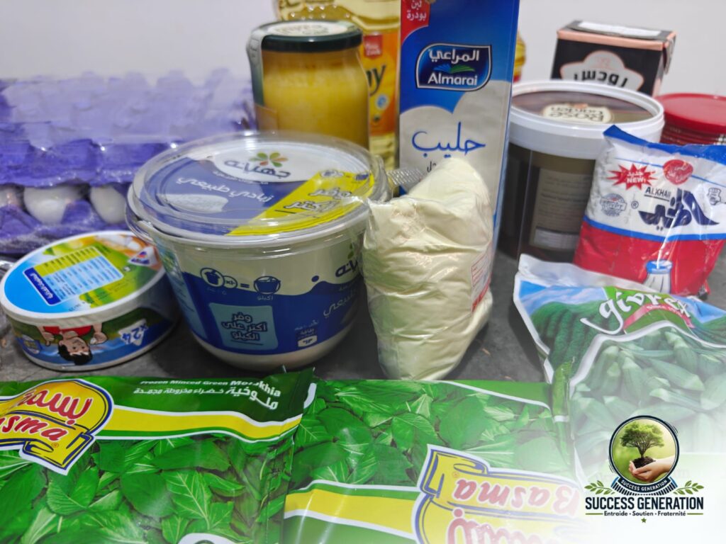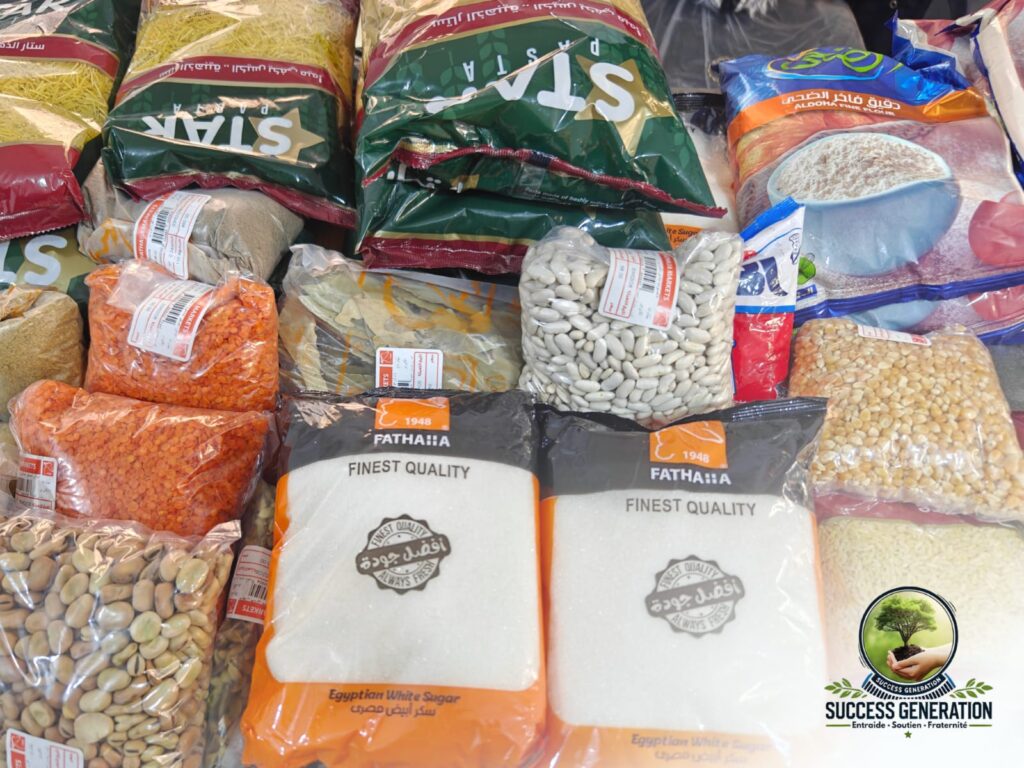 Un panier alimentaire permet à une famille de disposer de denrées essentielles pour le mois de Ramadan : riz, pâtes, farine, sucre, huile et autres produits de base, selon les besoins constatés.
